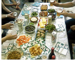 発表会以外にお互いに顔を合わせる機会が少ない生徒さん方の交流の場にと、手作り料理を持ち寄っての飲み会。