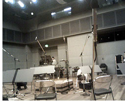 管楽器6人が指揮者に合わせ、全体像の分からないまま、切れはしのメロディを、ただ譜面通りに音を出す作業をする。そうして録った音に、別録りのハープとヴォーカルアンサンブルを重ねて仕上げるとの話。