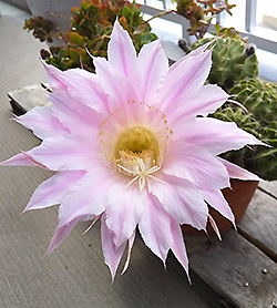 6月に入ると、ベランダのサボテンさんが、花を咲かせてくれる。年に一度だけ、それも1ヵ月ほどかかって、蕾が徐々に大きくなって、満月の夜に密かに大輪の花を開かせ、翌日には萎んでしまう。