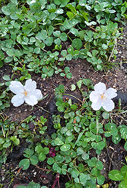 ピンクの花天井の下、雀の囀りに耳傾け、そよ風に吹かれていたら、日々の憂さもどこへやら。 |