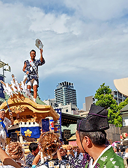 抜け出し、ワイワイの掛け声の所へ行けは、山鉾が斜めになったり大騒ぎ、残念ながらお神輿担ぎは見られませんでしたが、しっかりお祭り気分。