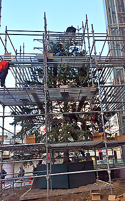 近頃は、もう10月からでも飾られているクリスマスツリー、これは阪急HEP FIVE前のツリーですが、朝たまたま飾り付けをなさってる所で出くわし、棚組んで男性5人が、2日間作業してはりました。 綺麗だなぁ〜の裏には、こんな努力がいるんだなぁ〜と。